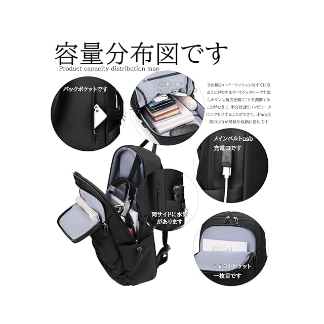 【軽量で大容量】収納力は十分にあり。A4サイズ、PC、教科書、傘、衣類、飲み物、お弁当、重い荷物を入れても安心感あり。通学や通勤や旅行や出張などにおすすめです。