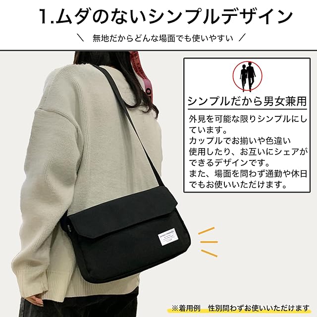 《新品未開封》[ユニベイズ] [本当に沢山入る!] ショルダーバッグ メンズ レディース 小さめ 軽量 斜めがけ ナイロン シンプル ストリート 無地 (ブラック)