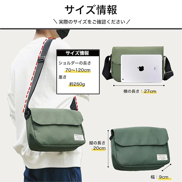商品名:《新品未開封》[ユニベイズ] [本当に沢山入る!] ショルダーバッグ メンズ レディース 小さめ 軽量 斜めがけ ナイロン シンプル ストリート 無地 (カーキ)