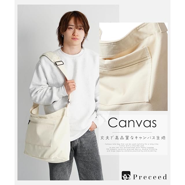 ✅ キャンバス 【徹底的にこだわった品質 】従来の品質を超える Preceed(プレシード)限定 キャンバス トートバッグ が登場。バッグが重くなっても安心「脱着可能ショルダーパッド」を付属。すぐ取りたい物を分けて収納できる「大容量内ポケット」に加え、厳選された「高品質キャンバス生地」と安心の高耐久高品質のファスナーを採用。学生カバン メッセンジャーバッグ エコバッグ 旅行バッグ ショルダーバッグ 、本製品1つでマルチに活躍します。