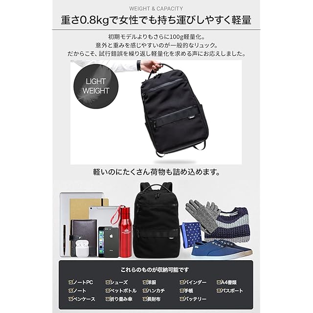 《新品未開封》[Evoon] マルチビジネスリュックair2.0 ビジネスリュック メンズ レディース 800g 軽量 撥水加工 リュックサック バックパック 人気 15.6インチ (ブラック)