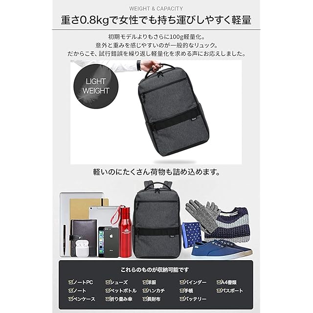 商品名:《新品未開封》[Evoon] マルチビジネスリュックair2.0 ビジネスリュック メンズ レディース 800g 軽量 撥水加工 リュックサック バックパック 人気 15.6インチ (グレー)