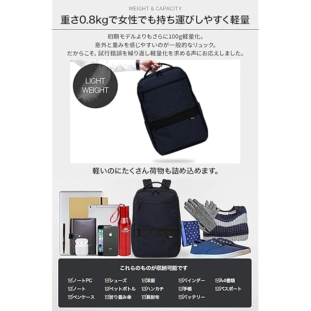 《新品未開封》[Evoon] マルチビジネスリュックair2.0 ビジネスリュック メンズ レディース 800g 軽量 撥水加工 リュックサック バックパック 人気 15.6インチ (ネイビー)