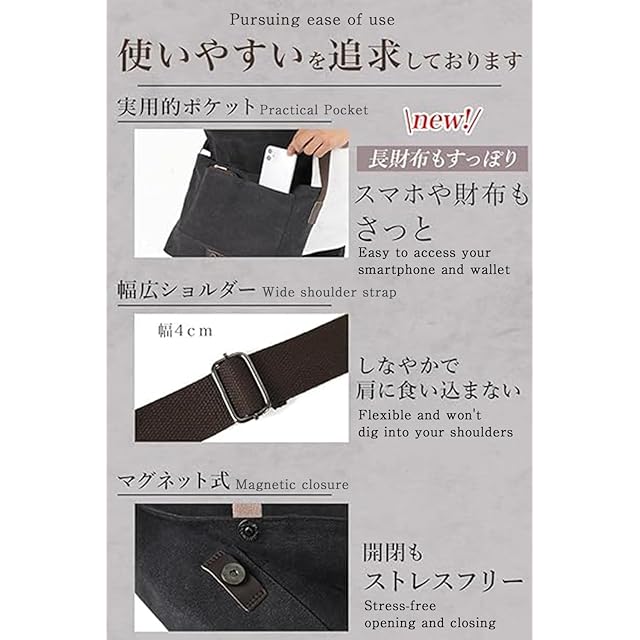✅【使いやすくなって新登場】 スタイリッシュなショルダーバッグが改良してさらに使いやすくなりました。スマホ、長財布がサッと出せる新しい収納をはじめさらに使いやすい肩掛けバッグを目指して改良を重ねました。お客様の声をもとに作られたショルダーバッグをぜひお試しください。