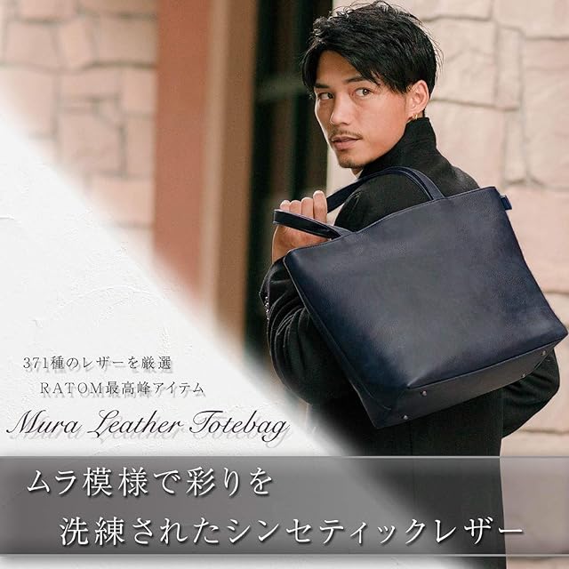 【厳選された質感とフォルム】上品で光沢を抑えたムラのあるマット革(シンセティックレザー)を仕様したトートバッグです。普段遣いのバッグとしても、ビジネスバッグとしても利用することができるON/OFF兼用のトートバッグになります。シンプルさを求め、主張しすぎないオールマイティに使える”良い意味での脇役のバッグ”となってくれます。流行に左右されない”Simple is the best”という王道を貫き、男性女性問わず愛用していただけるデザインとなっています。”なめらかで光沢を抑えたマットレザー”を採用したことで、価格以上に見栄えする高コストパフォーマンスを実現しました。収納力も素晴らしい内容で、A4サイズやB4サイズの書類だけではなく、Macbook、Windowsともにノートパソコン13インチもゆとりをもって収納することができます。さらには、パソコンを入れたままで自立する設計となっています。(極端に重量が片側に寄った場合は自立しない場合もございますのでご注意ください) 【さりげない洒落感を放つムラ革】この価格帯では実現が難しい”なめらかで光沢を抑えたムラ模様のマットレザー”で構成されたトートバッグです。落ち着いた色合いでビジネスや仕事での利用時には、バッグが主張しないため、さりげなく上品な持ち物という印象を先方に印象づけることができるビジネスバックとなります。プライベートでの利用時には、光沢を抑えてなめらかな質感にしたことでカジュアルな服装にも合わせやすく、このトートバック一つで全体をキッチリとまとめ上げお洒落感や都会的な感じを醸し出すことができます。世の中にはエナメル革やコードバン、ガラスレザー等の強い光沢を放つ皮革鞄が存在しますが、そういったカバンの光沢感とは見る人によっては価格帯が一目瞭然であったり、安っぽさが際立ってしまうことがあります。そこでRATOMトートバックは頑丈でありながら上品なシンセティックレザーを仕様し高品質なトートバッグを制作しました。 【”心惹かれる”秀逸なデザイン】プライベートバッグとしても、ビジネスバッグとしても利用できるON/OFF兼用のデザインです。バッグ選びの一番の要である”心惹かれる”バッグかどうかというシルエットデザインにこだわり洒落感のあるムラ模様のシンセティックレザーを仕様しました。男性だけでなく女性からも支持される上品な生地感と滑らかなマット感仕様でありながら、スマートな印象を与えることができる画期的なデザインとなっています。商談や打ち合わせだけではなく、デートや小旅行の際にも好感を持ってもらえるポイントが随所に散りばめられています。ショルダーバッグやキャンバストートとは違い、それだけで大人な雰囲気を演出することができ、メンズ・レディース・年齢問わずに愛用し続けられるオールマイティなバッグです。