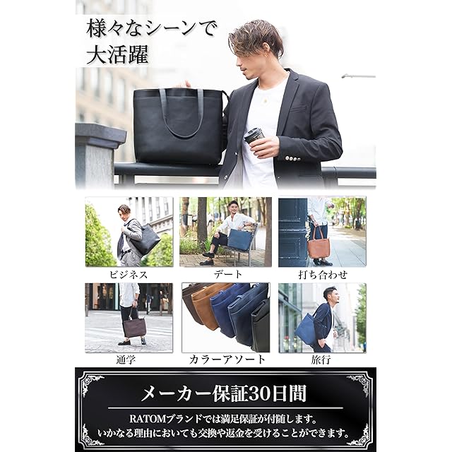 商品名:《新品未開封》[RATOM] トートバッグ メンズ 大容量 ビジネスバッグ バッグ カバン 洗練された上品な質感(ON/OFF兼用・自立型) (ブラック)