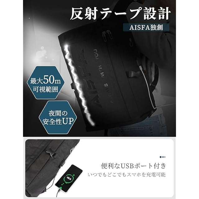 商品名:《新品未開封》[AISFA] リュック メンズ リュックサック スクエア バックパック 防水17インチ PC ビジネス ラップトップバック USB充電ポート付き 30L アウトドア旅行防災 通勤 靴/弁当収納(スカイブルー)