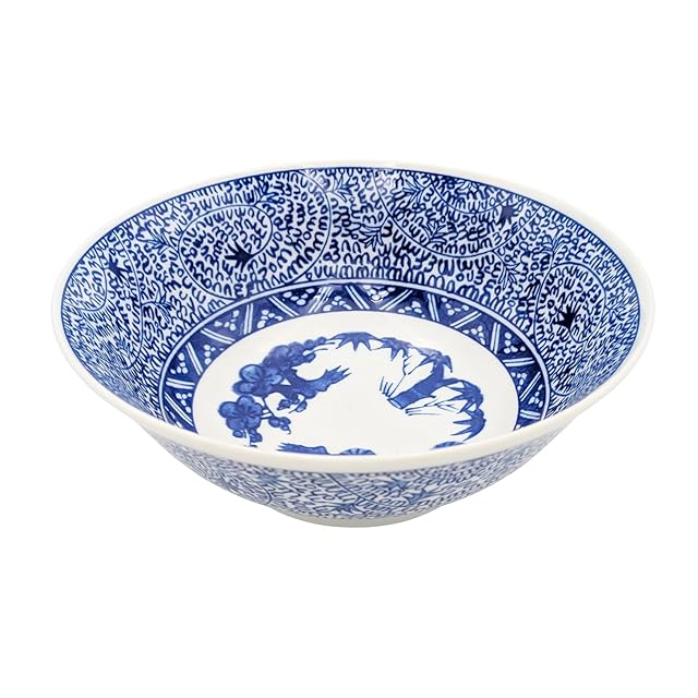 《新品未開封》美濃焼 ラーメン麺鉢 丼 ボウル 約20cm 電子レンジ 食洗機対応 美濃古紋 青 日本製 133-81514