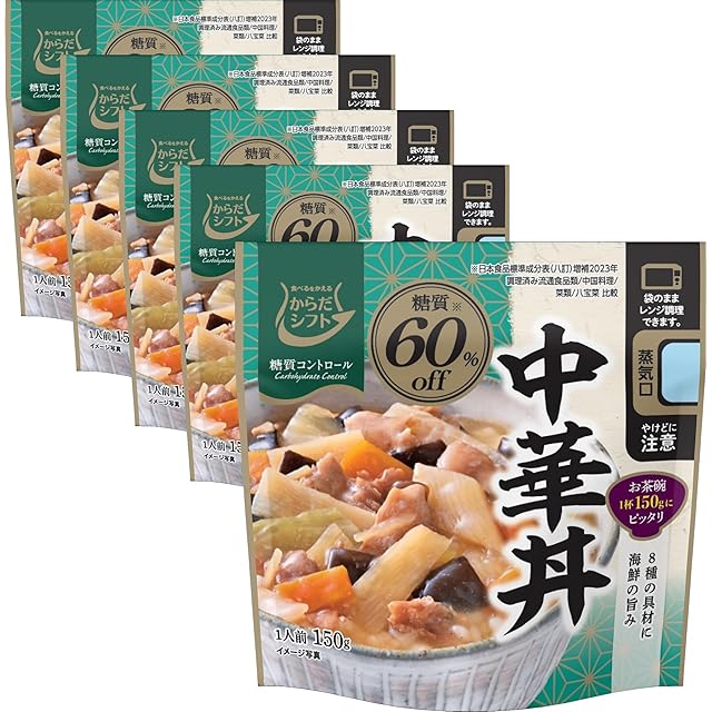 商品名:《新品未開封》からだシフト 糖質コントロール 中華丼 (150g ×5個) 糖質60%オフ (8種の具材入り) 一人暮らしの方にも (簡単調理) 電子レンジ対応パウチ 時短調理