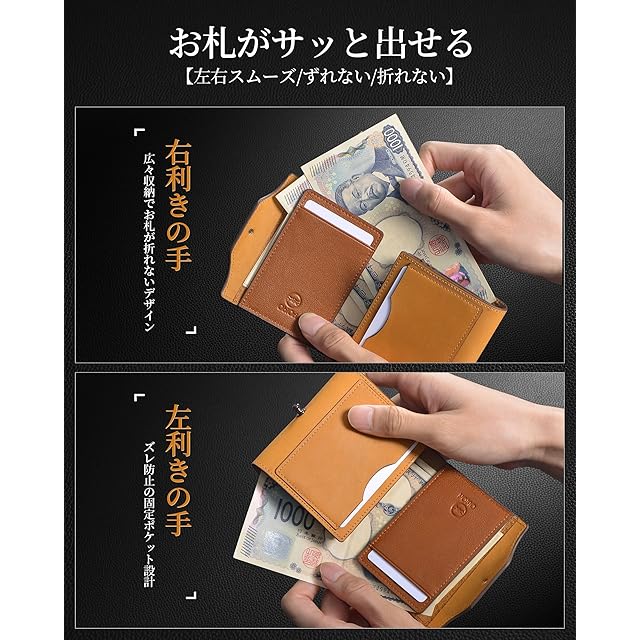 【大容量 財布 メンズ】硬貨15枚・紙幣15枚・カード7枚・Suica1枚を一括収納可能な3つ折り箱状財布。紙幣固定ポケットでズレと角折れを防止。左利きにも右利きにも対応した設計で快適操作を実現。