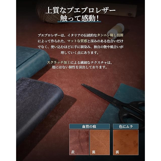 【財布 メンズ 本革】プエブロレザー財布は、少しマットな仕上がりが特徴で、独特な風合いがあります。最初は少し硬さを感じるかもしれませんが、使い込むことで徐々に柔らかくなり、手になじんでいきます。時間が経つごとに、色味が深まり、経年変化が楽しめます。