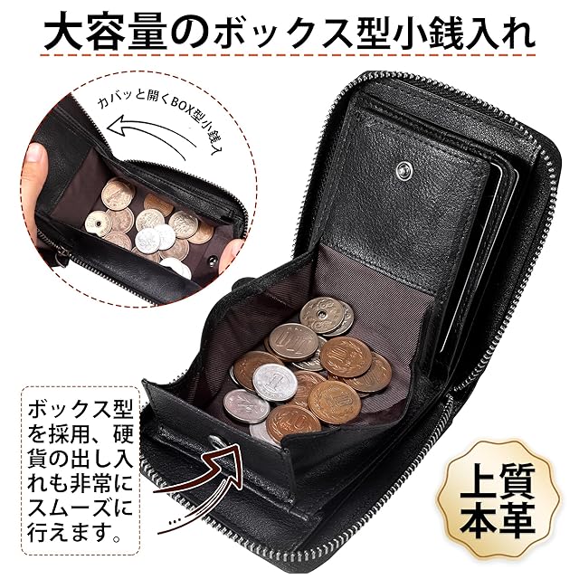 財布 メンズ 2つ折り 本革 二つ折り財布 大容量 さいふ コンパクト ミニ財布 ブランド 男子 折り畳み 人気ランキング 小さい財布 カードたくさん ラウンドファスナー 使いやすい BOX型小銭入れ プレゼント用 折りたたみ 男性用 レザー お札入れ2室 一流の革職人が作る 紳士用 ビジネス プレゼント スキミング防止機能 箱型 コの字型ファスナー 高級感 しゃれな財布 父の日 人気ギフト