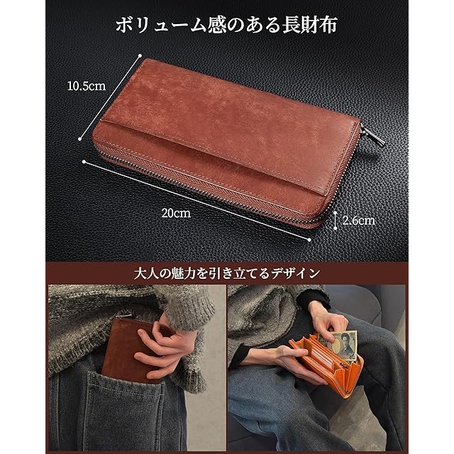 【心地抜群長財布】20×10.5cmのサイズは、ボリューム感があり、落ち着いた雰囲気を引き立てます。6色からお選びいただけ、上質なギフトボックスも付いています。自分へのご褒美はもちろん、昇進や転職の贈り物としても最適です。財布の品質には絶対の自信があり、180日間の期間を設けておりますので、万が一品質に問題があった場合でも、いつでも対応させていただきます。