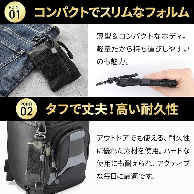 ✅カラビナ付きだから、バッグやリュック、ベルトループにさっと装着可能。アウトドアやフェス、旅行時など、ポケットが少ない場面でも身軽に持ち運べて便利です。