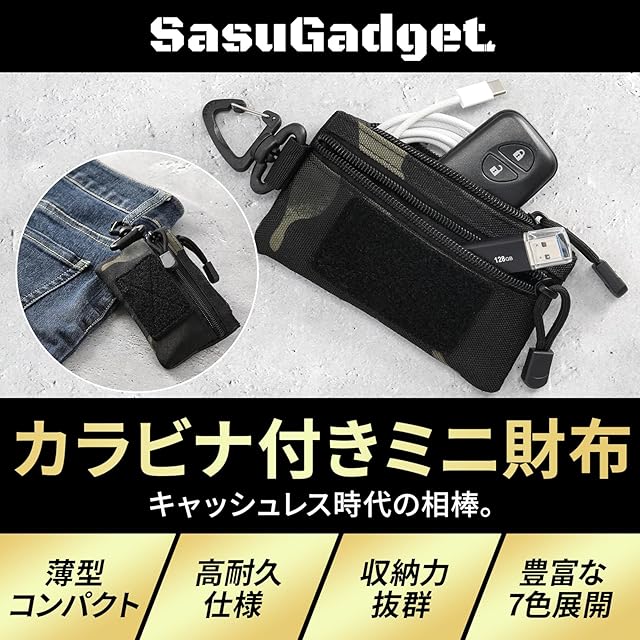 商品名:《新品未開封》サスガジェット (カラビナ付) 財布 メンズ アウトドア ウォレット コンパクト コインケース キーケース トラベル ナイロン 登山 フェス (ダークカモ)
