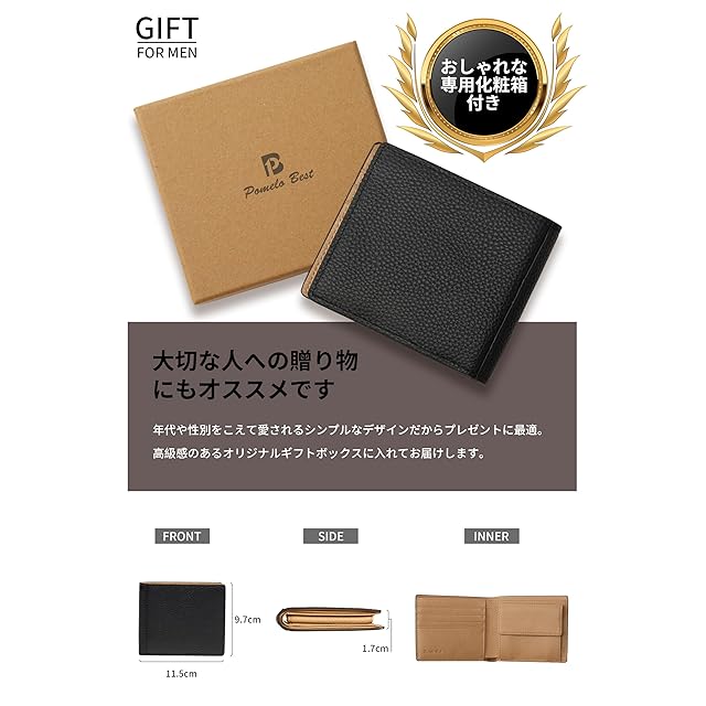 《新品未開封》[Pomelo Best] ポメロベスト 財布 メンズ 一流の職人が作る 本革 カード10枚収納 化粧箱付き ギフト プレゼント 大容量 二つ折り財布 小さい コンパクト