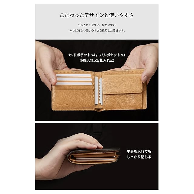 Pomelo Bestの二つ折り財布は、厳選された牛本革を使用した大人のための本格仕様。しっとりと手に馴染み、使い込むほどに深まる革の味わいは、使い手の個性を映し出します。高級感と実用性を兼ね備えた、こだわりの逸品です。