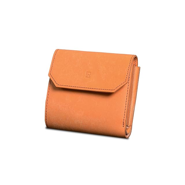 《新品未開封》[Kawaoto] 財布 メンズ 2つ折り プエブロレザー 本革 二つ折り財布 コンパクト 日本製 小銭入れ サイフ 金運財布 実用性 プレゼント (柿色)