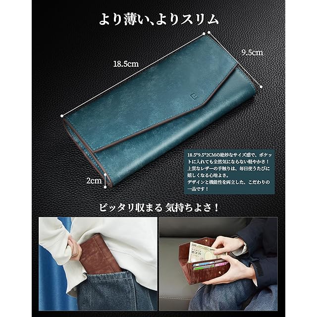 【スリムなサイズ感】財布 メンズの容量はそのままに、サイズを18.5×9.5×2cmにスリム化!より細長いデザインで、後ろのポケットにもすっぽり収まり、持ち運びラクラクです。デザイン性と機能性を兼ね備えた一品です。