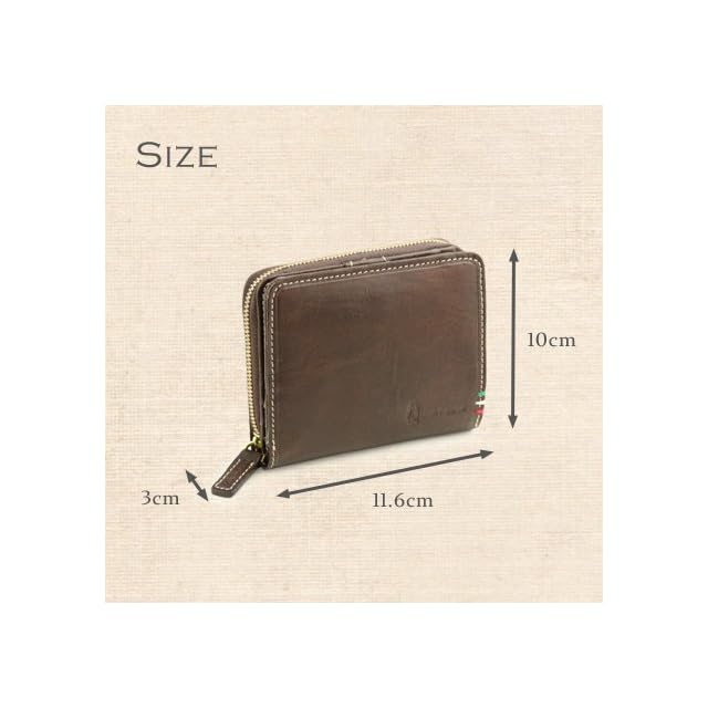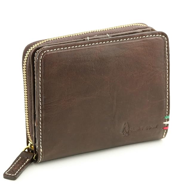 アメリカンカジュアルブランドとして知られるHushPuppiesから、熟練した職人が手作業で彩色したイタリアンレザー「TAMPONATOレザー」を使用したコインケースです。<br>革らしい素材感を生かしたシンプルなデザインで、使いやすい定番デザインです。<br>イタリアの三色旗をモチーフにしたステッチがポイント。<br><br>三方にファスナーがついて大きく開く、ラウンドファスナータイプの小銭入れがついた二つ折り財布。カード用のポケットはたっぷり17枚分ついています。<br><br>■ SIZE : H 10cm × W 11.6cm × D 3cm<br>■ MATERIAL : 牛革(イタリアンレザー)<br>■ COLOR : キャメル チョコ ブラック<br><br><b>★革の質感の目安★(5段階)</b><br>柔らかい □□■□□ かたい<br>なめらか □□□■□ ざらざら