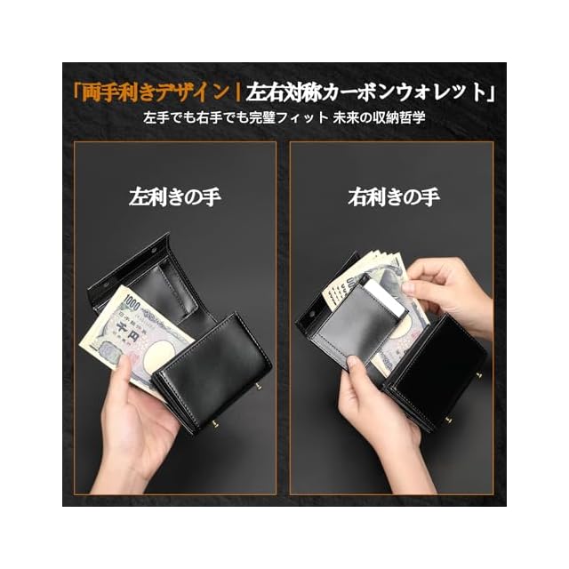 【整然とした収納力】 軽量ながらも、ロングウォレット並みの大容量を実現。3つの大容量カードスロット・2つの使い勝手の良いサイドカードスペース・1つの硬貨収納部・1つの紙幣収納部を備え、計20枚のカード・40枚の硬貨・20枚の紙幣を収納可能です