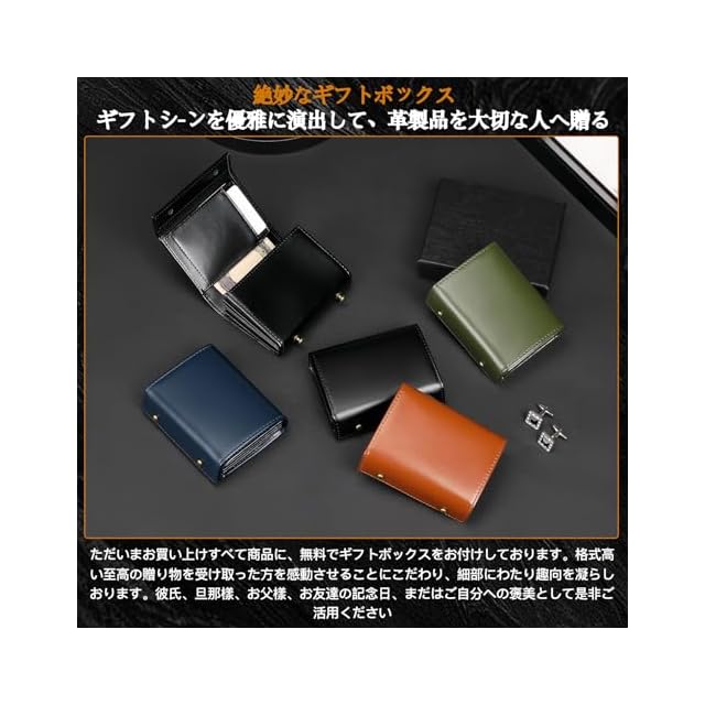 【厳選素材】 職人が自ら厳選した高級本革を使用。質感・耐久性・軽量性・防水性を完璧に融合させました。各ウォレットは職人が心を込めて製作し、日本の伝統的な職人精神を体現しています。使用するたびに、その高級感と熟練の技が感じられるでしょう。 【整然とした収納力】 軽量ながらも、ロングウォレット並みの大容量を実現。3つの大容量カードスロット・2つの使い勝手の良いサイドカードスペース・1つの硬貨収納部・1つの紙幣収納部を備え、計20枚のカード・40枚の硬貨・20枚の紙幣を収納可能です。 【合理的なデザイン】 大容量収納を実現しつつ、コンパクトなボックス型ウォレット。全長10.8cm×高さ8.6cm×厚さ3cmのサイズは、手のひらにぴったり収まり、負担を感じさせません。都会のスピード感あふれる生活に最適なサイズです 様々な業界のお客様から「長期使用で留め具が破損する」というフィードバックをいただき、継続的なテストを重ねました。その結果、「万回以上の閉じ動作でも破損しない」耐久性に優れた留め具を開発。今回のアップグレードは大成功に終わりました 【高級感あふれるギフトボックス】 当ウォレットには、細部にこだわりを凝らした高級感あふれる包装ボックスを同梱。夫・父・母・友人への記念日に最適です。また、品質として「購入日から1年以内に商品に不具合が発生した場合、またはご満足いただけない場合は、無条件で返金または交換いたします」。安心してお選びください。ご満足は弊社の最優先の約束です