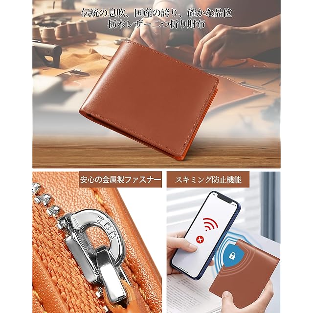 商品名:《新品未開封》二つ折り財布 メンズ 栃木レザー RFIDスキミング防止 ラウンドファスナー 小銭入れ カード12枚収納 大容量 一流の職人が作る 2つ折り財布 使いやすい ビジネス 日常使い ギフトボックス付き