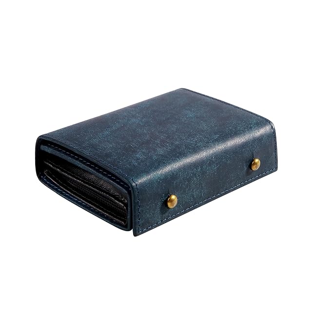【膨らみにくい独自設計】すっきりとした箱型の形全体の厚くならないさにこだわったデザインですが、財布の外側は2つの留め具でしっかり固定する設計で、閉じた状態でも美しい直線的なシルエットを保ちます。▶留め具について:留め具の部分は革を二重に使用しており、差し込み式となります。この方法は耐久性が強く、しっかりとしているため採用されました。