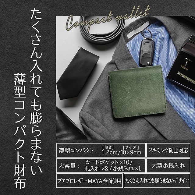 【サイズ】10*9.5*1.5cm 重量73g 【皮革】イタリアンレザー 【タイプ】コンパクトミニ財布 【カードポケット】カードポケット10(内部×5、札入れ内×4、外側×1)【小銭入れ】スナップボタン式大型小銭入れ1 【札入れ】2か所