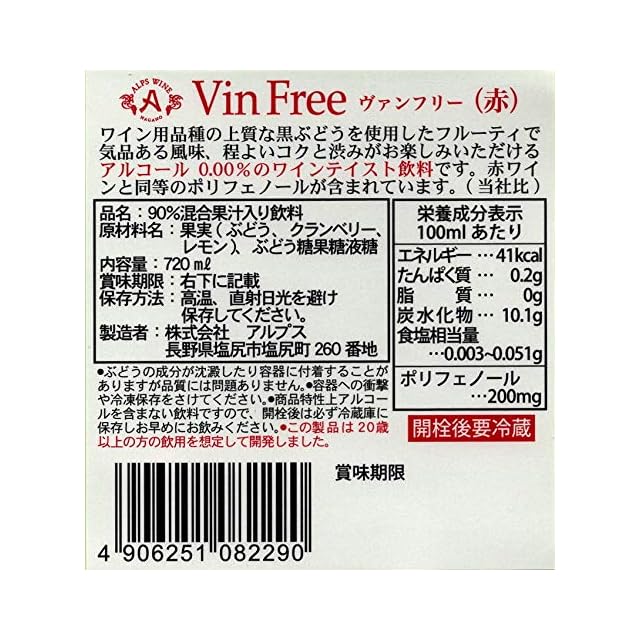 商品名:《新品未開封》アルプス ヴァンフリー [ ノンアルコール 720ml ]