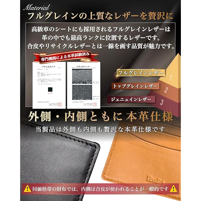 ✅ 【 本革 ならではの 高い耐久性 】革の中でも高級ランクに位置するフルグレインは、革本来の強さを持っているので耐久性にも長けています。 当財布は 外装 も 内装 も フルグレインレザー を使用しております。床革やリサイクルレザー、合皮とは一線を画す耐久性を誇ります。