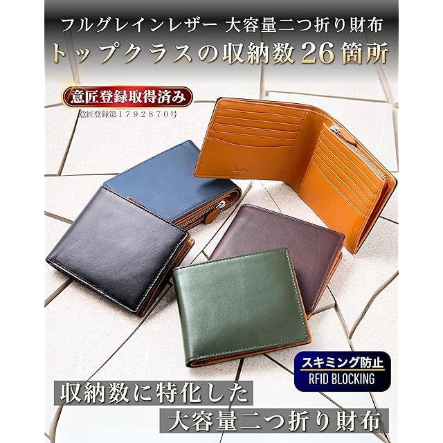 ✅ 【 上質 フルグレインレザー 大容量 二つ折り財布 】 高級感溢れる レザー の風合いと、王道のクラシカルで シンプル なデザインが男らしくも おしゃれ な印象を引き立てる 2つ折り財布 です。あらゆる 折りたたみ財布 の中でもトップクラスに収納性が高い設計だから お財布 に収納力を求める方に おすすめ の 大容量 の 2つ折り 財布 です。