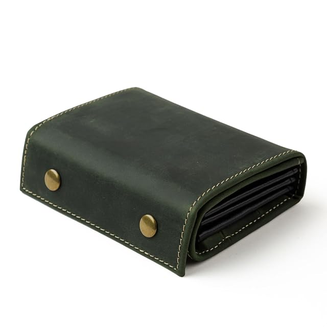 《新品未開封》[ 亀登鞄製作所 ] 財布 メンズ 二つ折り財布 (牛革の最表面のみ採用) (柔らかい肌触り) クレイジーホースレザー 本革 職人の手作り 2つ折り財布 箱型の小銭入れ お札を折らずに収納 右利き 左利き ギフト (グリーン)
