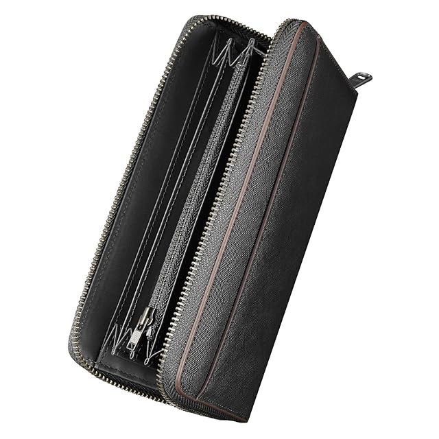 Alivernの長財布は、高級な本革を使用し、一流の革職人によって丁寧に作られた逸品です。YKKファスナーを採用し、耐久性と操作性を両立。スキミング防止機能を搭載し、大切な情報を守ります。カード収納は15枚可能で、お札入れ、小銭入れ、通帳ポケットも備えた機能的な設計。ビジネスシーンに映えるスタイリッシュなブラックカラーで、上質な牛革の風合いが魅力です。大容量ながらスマートなデザインで、ビジネスマンの必需品として長くご愛用いただけます。収納力と機能性を兼ね備え、使いやすさを追求した紳士用の長財布です。