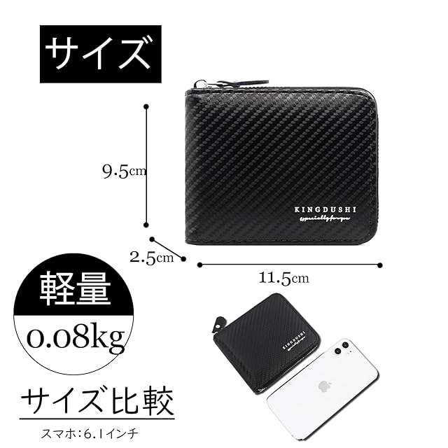 【軽量二つ折り財布】重量わずか80gです。普段使いにちょうど良い収納力がありながら、運びが楽ちんになっています。