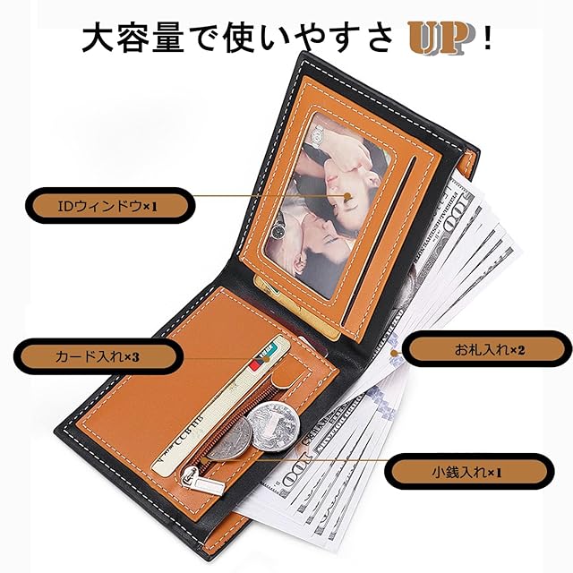 【仕様&品質】男性財布のサイズ:約12*10*0.8cm。重さ:約85g。手に収まるコンパクト設計!小銭入れ×1、カード入れ×3、お札入れ×2、IDウィンドウ×1。12ヶ月、24時間カスタマーサポート、万が一商品不具合を生じた場合販売店へ、注文番号は領収書に替わります。