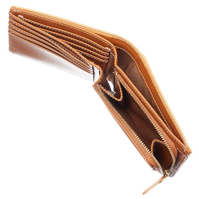 商品名:《新品未開封》[VOICE] ヴォイス 本革 レザー メンズ 二つ折り 財布 使いやすい ファスナー 小銭入 カード 14枚収納可 プレゼント 用 ギフト箱入り (Camel)