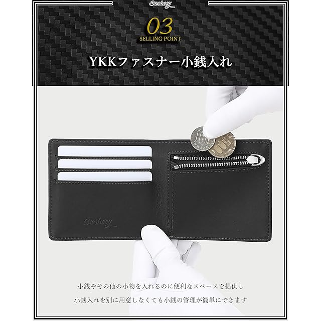 商品名:《新品未開封》[Casheey] 二つ折り 財布 メンズ カード14-16枚収納 大容量 ボックス型小銭入れ付き カーボンレザー 本革 男性 折りたたみ サイフ
