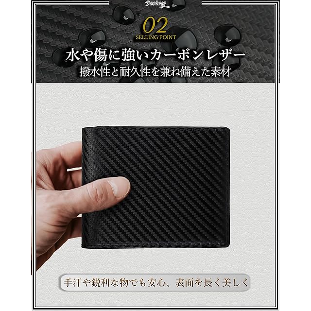 商品名:《新品未開封》[Casheey] 二つ折り 財布 メンズ 小銭入れなし カード18枚収納 大容量 カーボンレザー 本革 男性 折りたたみ サイフ