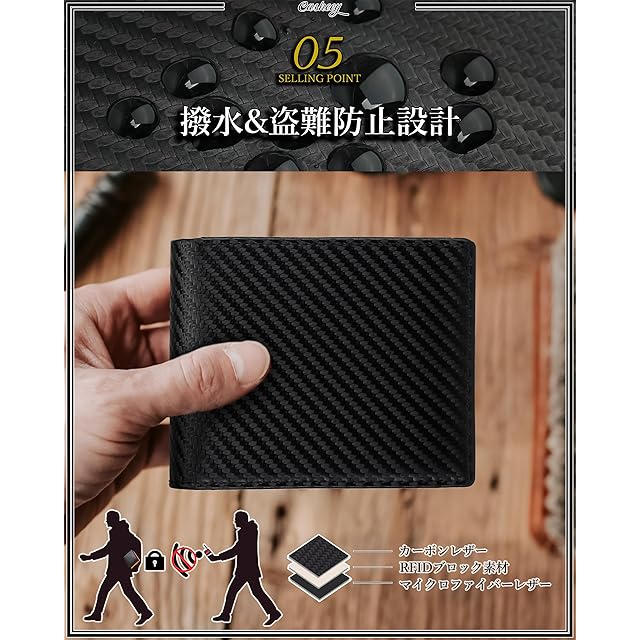 商品名:《新品未開封》[Casheey] 二つ折り 財布 メンズ カード14-16枚収納 大容量 ボックス型小銭入れ付き カーボンレザー 本革 男性 折りたたみ サイフ