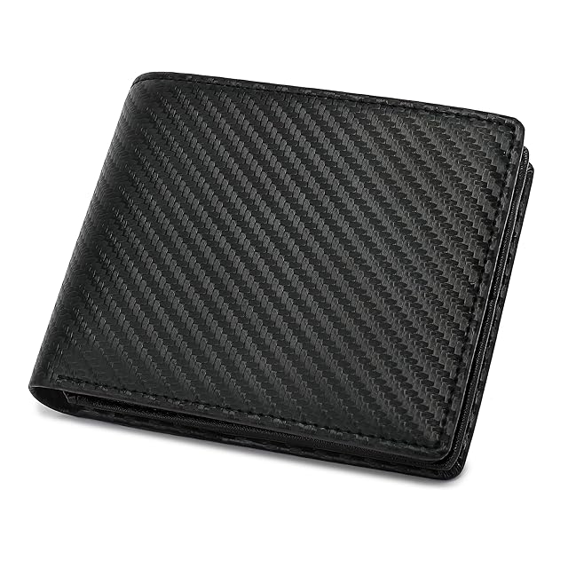 《新品未開封》[Casheey] 二つ折り 財布 メンズ カード14-16枚収納 大容量 ボックス型小銭入れ付き カーボンレザー 本革 男性 折りたたみ サイフ