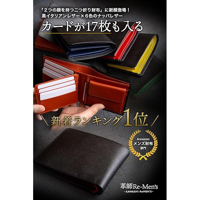 【特徴】 お洒落なツートーンの本革製二つ折り財布(ふたつおり財布)/【収納力】 小銭入れ[1区画]、お札入れ[2区画]、カードポケット[17カ所](うち4カ所はお札入れの中の隠しポケット)