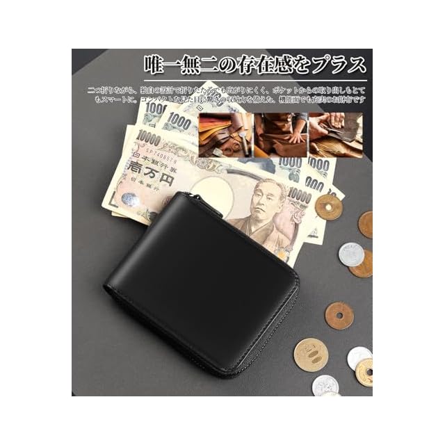 商品名:《新品未開封》財布 メンズ 2つ折り 日本栃木 レザー 二つ折り財布 YKK ラウンドファスナー 一流の革職人が作る 折り財布 BOX型小銭入 スキミング防止 ふたつおり 折りたたみ財布 本革 薄型 厚くならない 父の日 一粒万倍日 天赦日 虎の日(新モデル)