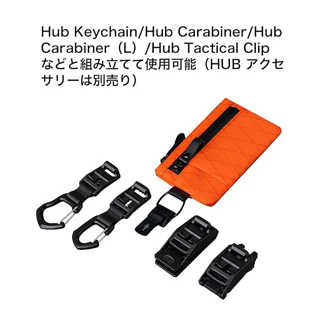 【実用的な収納スペース】<br>この製品は、使い勝手の良い収納スペースが充実しています。 効率的な内部構造:前面にはファスナー付きポケットとスロットが一つずつあり、メインポケット内部も二つに分かれているため、現金、カード、小銭などを整理して収納できます。 さらなる拡張性:背面には二つのスロットがあり、左側の紐には別売りのHUBアクセサリーを取り付けて使用することも可能です。これにより、さらに収納力を高めたり、用途を広げたりできます。 個性を際立たせるデザイン:内側には鮮やかなオレンジ色の裏地が使われており、個性を際立たせています。