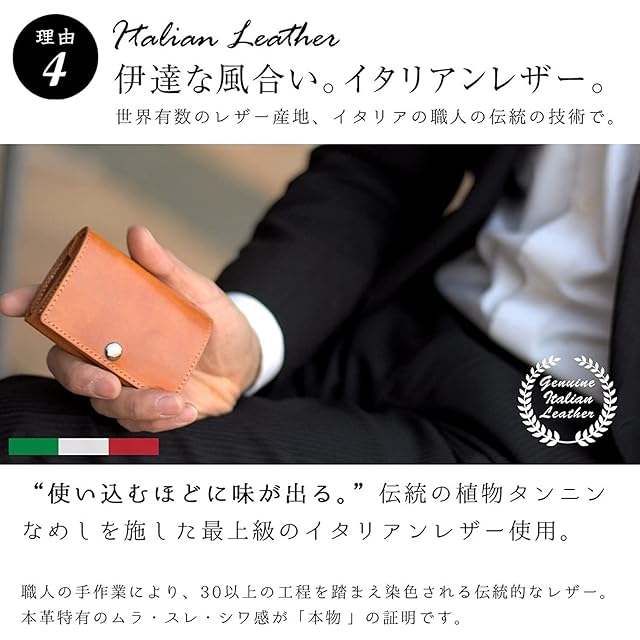 【について】※カードケース部分のよれについては、製造工程を見直し現在のロットではよれがなくなっております。(2019.8.17 現在)※万一、カードケース部分のよれなどございましたら、無償で交換をさせていただきますので、弊社まで直接ご連絡をお願いいたします。本商品は一般財団法人 日本皮革研究所の試験成績報告書 No.0163-2-1 により認定をいただいた検査済みの牛革を使用しております。
