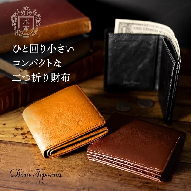 商品名:《新品未開封》[Dom Teporna] 財布 メンズ 二つ折り財布 スマート イタリアンレザー 柔らかい 本革 多ポケット 小さい コンパクト スリム ビジネス ダークブラウン
