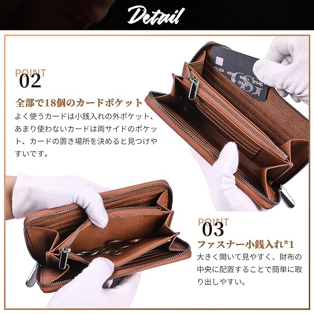 ▶【長さいふ-高級感】:高品質なファスナーを採用し、スムーズに開閉することができます。繰り返し使用しても破損しにくいです。有名ブランド品に匹敵する品質を持っていてコスパが高いです。贅沢本革を使用して、使い込む程に、光沢を持った表情へと変化していく美しいエイジングで、独自のツヤ感と長年使用することで体現される形の変化も見所です。