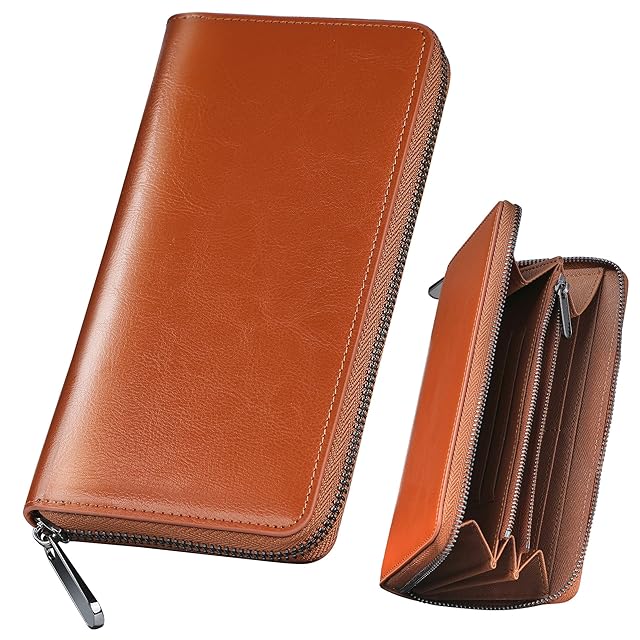 ▶【長財布-大容量】:ラウンドファスナーで、カード・お札を取り出しやすいように大きく開きます。ファスナー式小銭入れで、コインの出し入れはしやすいです。(通帳が入る大きさで使いやすい!)★おしゃれなデザインと実用性を兼ね備えた財布長財布(お洒落なメンズ長財布)。