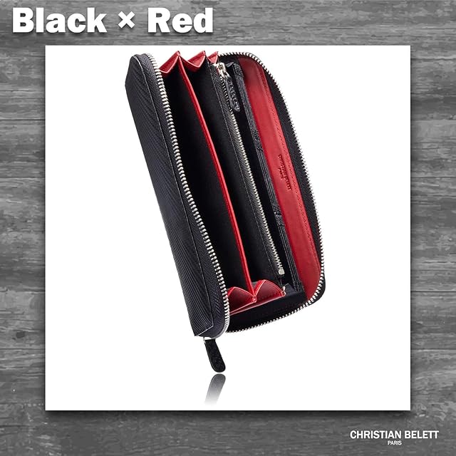 《新品未開封》[CHRISTIAN BELETT] monoマガジン 掲載 下町の財布屋さんが作った 軽くて 使いやすい メンズ 長財布 カード縦型収納 大型BOX小銭入 ギフト箱入り (Black×Red)
