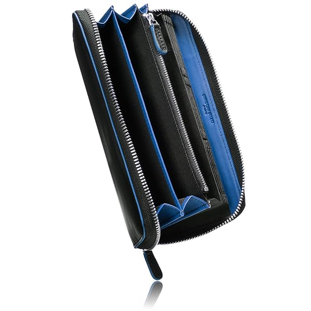 《新品未開封》[CHRISTIAN BELETT] monoマガジン 掲載 カラーエッジ 下町の財布屋さんが作った 軽くて 使いやすい メンズ 長財布 カード縦型収納 大型BOX小銭入 ギフト箱入り(Black×Blue)